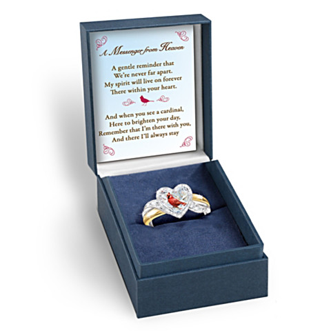 The arrival of a cardinal on your windowsill or a nearby tree branch is thought to represent a loved one looking down from the heavens. This spiritual symbol of love and protection provides comfort and peace. Now you can wear a remembrance ring that keeps your own cardinal messenger close wherever you go, or give this women's ring as a touching bereavement gift that expresses your deepest sympathy.